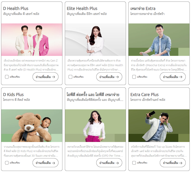 แต่ละแผนมีจุดเด่นและความคุ้มครองที่แตกต่างกันไป เพื่อตอบโจทย์ความต้องการของผู้เอาประกันที่หลากหลาย